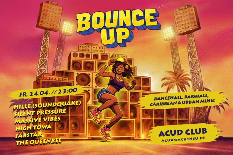 Berlin’s New Pulse of the Caribbean (Kick-Off): Dancehall, Basshall & Urban Beats On Friday, April 24, 2026, the kick-off of Berlin’s new Dancehall party series BOUNCE UP takes over ACUD Club (ACUD MACHT NEU) in Berlin-Mitte. You’ll get an intense dose of Caribbean vibes with diverse and high-energy DJ sets with a lineup that speaks for itself.