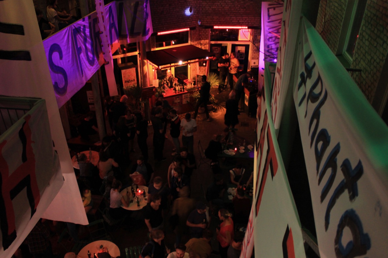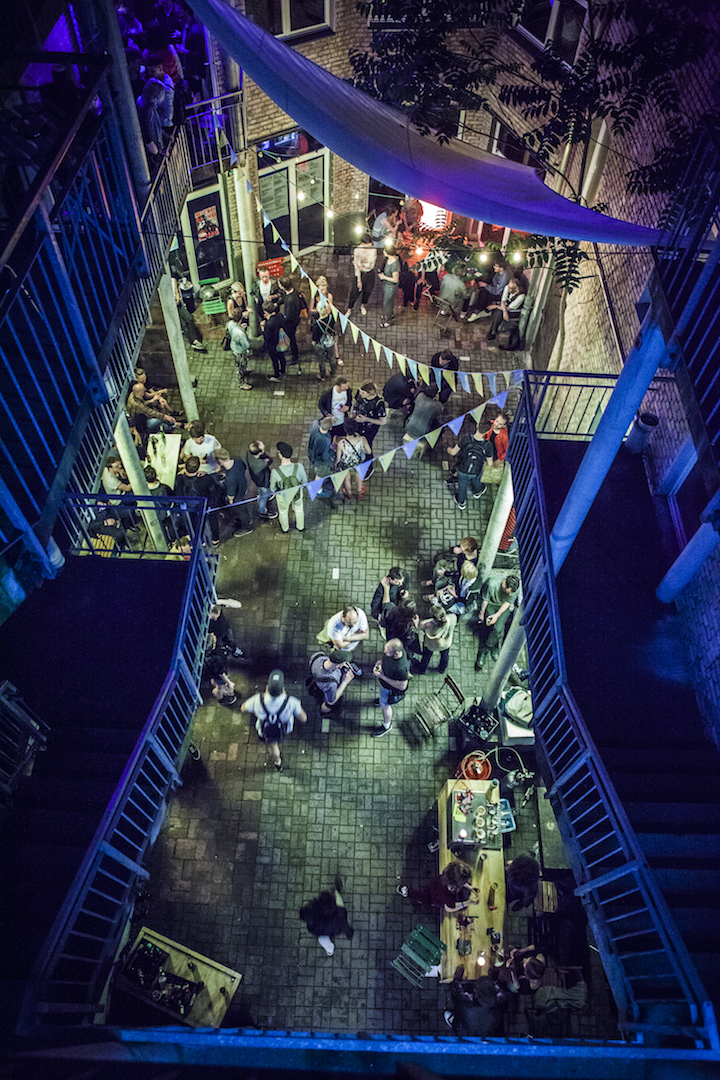 The BACKYARD is the heart of the house that interconnects all the spaces via balconies and stairways. During events, the courtyard is the perfect spot to hangout. In summer, it is pleasantly mild and at night the architecture unfolds an unique atmosphere in combination with the light. The courtyard can be used together with the other three spaces.